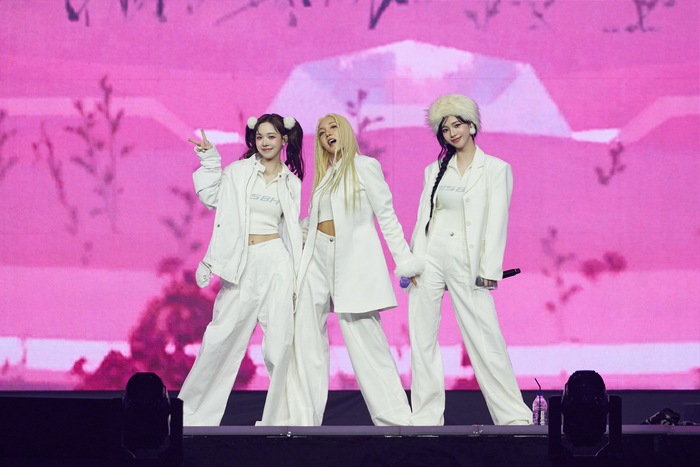 지난 11~12일 서울 고척스카이돔에서 열린 창립 30주년 기념 ‘SM타운 라이브 2025’에서 합동 무대를 꾸민 S.E.S. 출신 가수 바다(가운데)와 에스파 윈터·카리나. 사진제공=SM엔터테인먼트 11~12일 SM엔터테인먼트 창립 30주년 기념 ‘SM타운 라이브 2025’ 공연이 열린 서울 고척스카이돔,공연장 맞은편 먹자골목에 분홍색 현수막과 포스터가 나붙었다. 기업 로고 색상에서 유래해 SM엔터의 정체성을 상징하게 된 ‘핑크 블러드’(분홍색 피)에 착안한 마케팅이다. 식당과 카페,편의점까지 ‘SM 팬클럽 여러분 환영합니다’라는 문구와 가수들의 얼굴 사진을 붙이고 팬들을 맞이하고 있었다.
