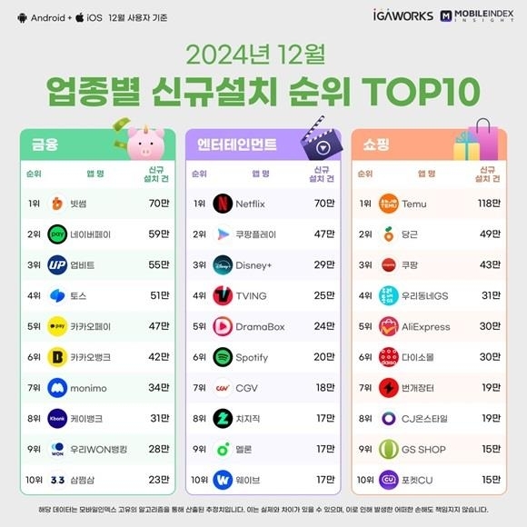 아이지에이웍스. 특히 지난달 쿠팡플레이 앱 신규 설치 건수는 47만건으로 티빙을 제치고 2위를 차지했다. 1위는 넷플릭스(70만건),2위는 쿠팡플레이(47만건),3위는 디즈니플러스(29만건),4위는 티빙(25만건) 등이다.