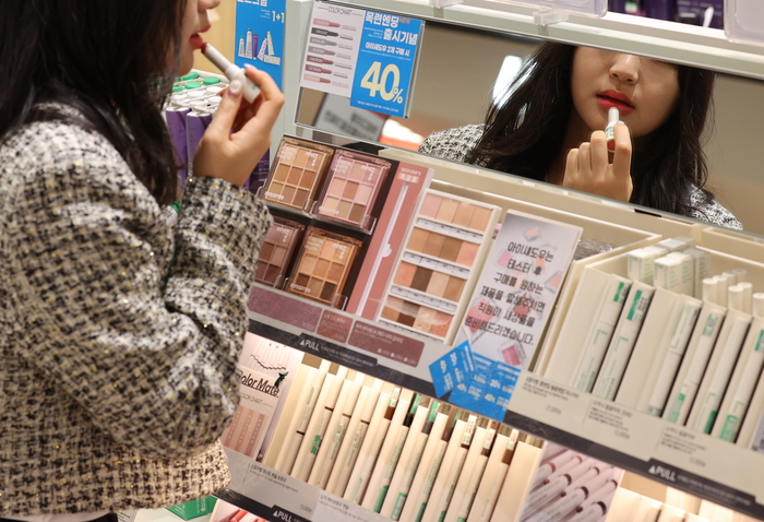 지난달 서울의 한 대형마트에서 관계자가 화장품을 고르고 있다.[사진제공=연합뉴스] 패션 플랫폼들이 최근 ‘뷰티’ 경쟁에 뛰어들고 있다. 패션과 뷰티를 연계해 두 카테고리의 시너지를 높인다는 계획이다.