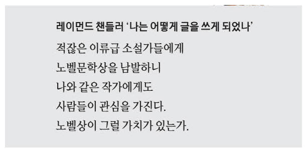 탐정소설 대가 챈들러는 왜 노벨문학상을 비판했나