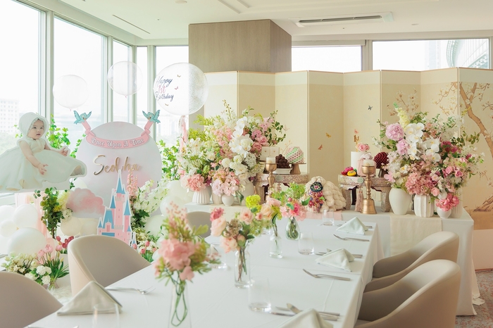 여의도 공원 풍광이 펼쳐진 공간에서 아이 첫 생일을 의미있게 기념할 수 있다. 자연 채광이 가득한 파크카페의 단독 프라이빗 룸 파크 갤러리와 가든 갤러리는 각기 다른 스타일의 돌상으로 꾸민다. 통창 너머로 보이는 공원 전망이 더해져 밝은 분위기를 연출한다.