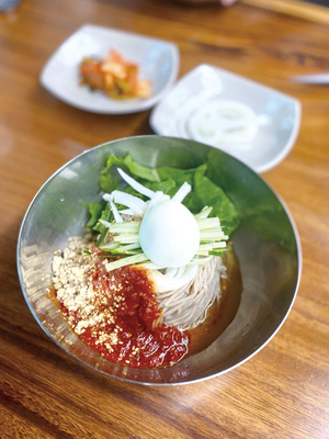 졸깃한 면발이 더해진 시원한 냉면은 늘 중독성 최고를 자랑한다. 그 중심에 한남동에 위치한 ‘동아냉면’이 있다. 20년이 넘은 추억의 맛이기도 한 동아냉면은 살얼음 아래로 보이는 평범한 면발과 빨간 양념,거기에 오이 고명이 전부다. 하지만 그 냉면의 힘은 꽤 크다. 새콤한 첫 맛에 더해진 매콤함은 이마에 땀방울 송골송골 맺힐 알싸함이 있다. 맛있게 입이 얼얼해지는 도파민 터지는 맛이다.맵질이라고 너무 두려워하지 말자. 양념 없이도 주문이 가능하며,테이블마다 비치된 매운 양념으로 입맛에 맞춰 양껏 추가가 가능하다. 셀프 바의 진한 육수는 성난 입안 달래기에 필수. 따끈하면서도 짭조름한 육수 맛에 홀짝이다 간 금세 배를 채우게 되니 주의하자. 메뉴도 단출하게 물냉면,비빔냉면,만두로 구성되며 양에 따라 소,중 두 가지 선택이 가능하다. 이 맛이 뭐가 특별한가 싶은데 자꾸 생각나는 묘한 맛,스트레스 받는 날,해장하고 싶을 때 1순위로 생각나는 메뉴다.강원도 막국수