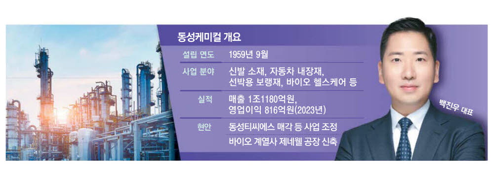1959년 설립된 동성화학을 모태로 하는 동성케미컬은 폴리우레탄을 기반으로 신발,자동차 내장재,단열재 등에 사용되는 화학제품을 생산한다. 에어백이 들어가는 주요 글로벌 스포츠 브랜드 운동화의 신발창 소재가 대표 제품이다. 자회사로는 액화천연가스(LNG)선 보랭재를 생산하는 동성화인텍과 바이오 헬스케어를 담당하는 제네웰 등을 두고 있다. 최근 백 대표는 '리브랜딩'을 단행하며 제2의 도약을 선언했다.