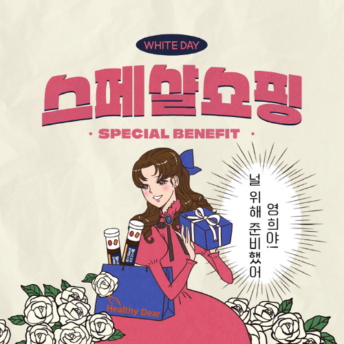 < 사진 제공 : 헬씨디어 > 프리미엄 건강기능식품 기업,헬씨디어가 다가오는 ‘화이트데이(White Day)’를 맞아 뉴트로 콘셉트의 ‘화이트데이 스페샬쇼핑’ 프로모션을 진행한다고 밝혔다.