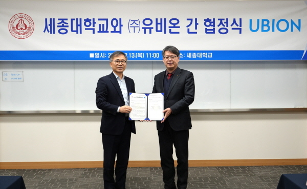 협약식은 세종대학교에서 유비온 임재환 대표와 세종대학교 엄종화 총장을 비롯한 주요 관계자가 참석한 가운데 진행됐다. 이번 협약의 일환으로,유비온은 세종대학교에 자사의 AI 챗봇 ‘코스모스 AI 챗봇’을 무상으로 제공하기로 했다.