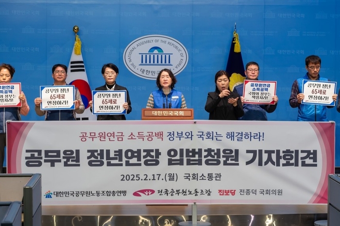 이들 단체는 이날 국회 소통관에서 기자회견을 열고 “정부와 국회가 2015년 공무원연금법을 개정하면서 약속한 소득 공백 해소 대책이 방치된 지 벌써 9년”이라며 “당시 공무원연금법 개정안은 더 많이 내고 더 적게 받고 더 늦게 받는 개악이었으나,공무원 노동자들은 소득 공백이 발생하기 전에 대책이 나오리라 믿었다”고 강조했다.