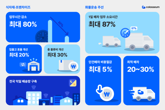 이와 함께,콜로세움은 브랜드,유통사,제조사 등 다양한 형태의 사업자가 필요한 정기,비정기 화물운송 주선서비스를 본격적으로 확장한다. 3온도를 비롯해 대형,고중량,특수화물 등 대부분의 상품군을 대상으로 쿠팡,컬리,이마트와 같은 주요 채널 납품을 지원한다.