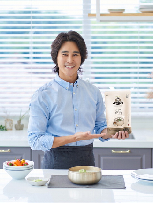 정태우 대표가 대디푸드 곰탕 밀키트 제품을 들고 포즈를 취해 보이고 있다. 대디푸드