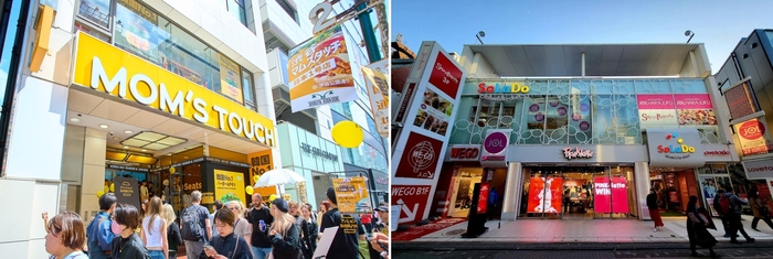 일본 직영 1호점 ‘시부야 맘스터치’ 전경(왼쪽)과 직영 2호점 ‘하라주쿠 맘스터치’ 입점예정지 전경. [사진제공=맘스터치] 토종 버거·치킨 프랜차이즈 맘스터치가 올해 상반기까지 도쿄 하라주쿠에 초대형 매장 ’하라주쿠 맘스터치’를 열 계획이라고 17일 밝혔다.
