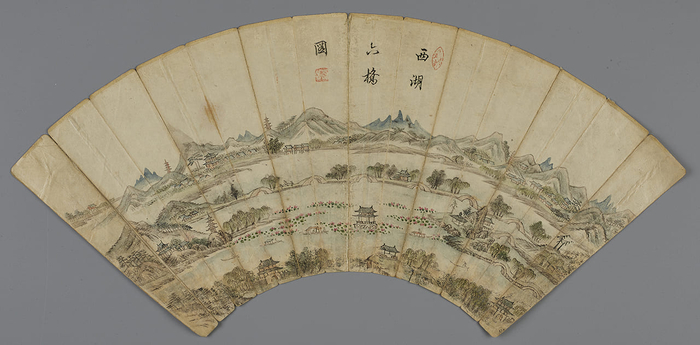 19세기 문인화가 한용간의 ‘서호육교(西湖六橋)’도 주목을 요한다. ‘서호’는 현 중국 항저우에 위치한 대호수의 이름으로,지금도 현존한다. 부채에 그려진 서호는 산봉우리와 호수가 부채에 파노라마처럼 펼쳐진다. 조선시대 서호는 조선 문인들에게 하나의 이상향에 가까운 명승지였다고 한다. 이 부채를 선물받은 문인들이 부채를 느리게 흔들며 향유했을 바람은 조선이 아니라 서호 그곳의 것일 수도 있다.
