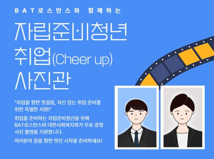 BAT로스만스(대표 송영재)는 상반기 채용 시즌을 맞아 자립준비청년의 원활한 사회 진입과 취업 준비를 지원하기 위해 ‘취업(Cheer-up) 사진관’ 캠페인을 시작한다고 7일 밝혔다.