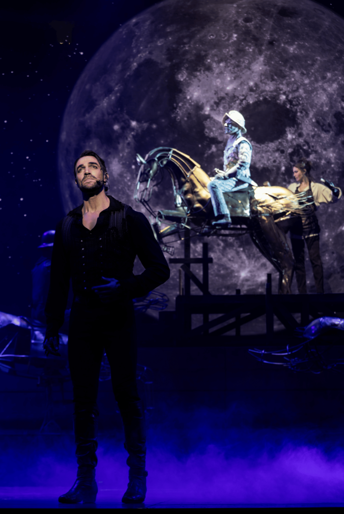프렌치 오리지널 뮤지컬 ‘돈 주앙’에서 돈 주앙(지안마르코 스키아레띠)이 달을 바라보며 슬픈 연기를 하고 있다. <마스트인터내셔널> 돈 주앙 역에는 2021년 뮤지컬 ‘노트르담 드 파리’ 내한 공연에서 폭발적인 가창력과 매혹적인 비주얼로 이례적인 한국 팬덤을 형성했던 지안 마르코 스키아레띠(Gian MarcoSchiaretti)가 맡았다. 그는 강렬한 카리스마로 무대를 휘젓으며 극을 이끈다. 돈 주앙이 유일하게 사랑에 빠지는 마리아 역에는 뮤지컬 ‘로미오와 줄리엣’ ‘십계’ 등에서 활약한 레티시아 카레레(Laetitia Carrere)가 출연해 깊이 있는 감정선을 보여준다.