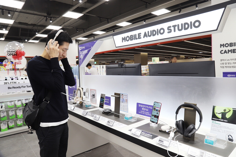 체험존도 조성돼 있는데,크게 '스마트폰 셀프 스튜디오' '모바일 게임 체험존' '모바일 음향 청음존'(사진)으로 구성했다. 롯데하이마트는 가구와 인테리어 통합 상담 요소를 극대화하고 있다.
