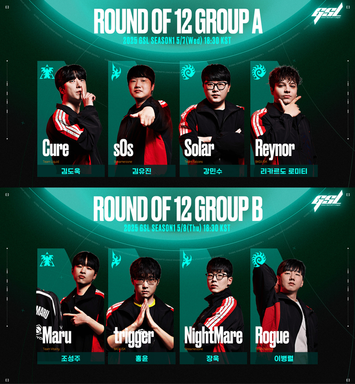 7일 오후 6시 30분에 펼쳐질 A조 경기에는 김도욱,김유진,리카르도 로미티,강민수가 출전해 8강 진출을 다툰다. 4년 만에 GSL 무대에 복귀한 김유진과 GSL에서 악연을 반복해온 로미티가 두 차례 우승 경험이 있는 김도욱·강민수를 상대로 어떤 경기를 선보일지 관심이 집중된다. 이어 5월 8일 같은 시간 B조 경기에서는 조성주,홍윤,이병렬,장욱이 맞붙어 8강 직행 티켓을 놓고 격돌한다.