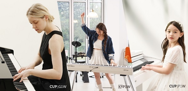 < 사진 제공 : HDC영창 > CUP G1W는 프리미엄 디지털 그랜드 피아노 모델로,고급 주거 공간이나 레슨 스튜디오에 적합하며,CUP P1W는 심플한 디자인과 공간 활용도를 고려한 가정용 모델이다. Ka P1W는 무대 연주와 퍼포먼스에 특화된 스테이지 피아노로,강화된 휴대성과 직관적인 버튼,그리고 신호의 지연 없이 반응하는 무선 페달을 기본 제공한다.