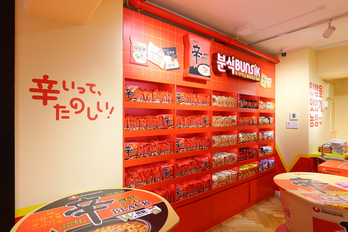 일본 하라주쿠 ‘신라면 분식’ 매장 내부. [사진 출처 = 농심] 일본 신라면 분식은 하라주쿠 다케시타 거리에 있다. 농심은 현지 젊은 층뿐 아니라 외국인 관광객이 즐겨 찾는 명소에서 매장을 운영하며 글로벌 소비자와 소통을 강화한다는 방침이다.