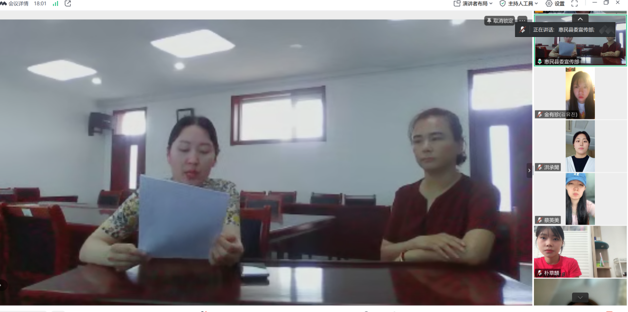6월 11일, 산둥성 혜민현 리좡진과 한국의 우호학교인 한국항공대학교가 온라인 플랫폼을 통해 특별한 문화 교류 행사를 진행했다. 이번 행사는 로프망을 매개로 산업 홍보, 기술 시연, 학생 간 교류 등의 프로그램을 통해, ‘중국 로프망의 고향’으로 불리는 리좡진의 독특한 매력을 한국 학생들에게 전방위적으로 소개하였다. 리좡진 당위원회 선전통전위원 쑨미, 한국항공대학교의 김유진, 박가연, 홍승음, 박초린, 조다빈 학생 등이 행사에 참여했다.