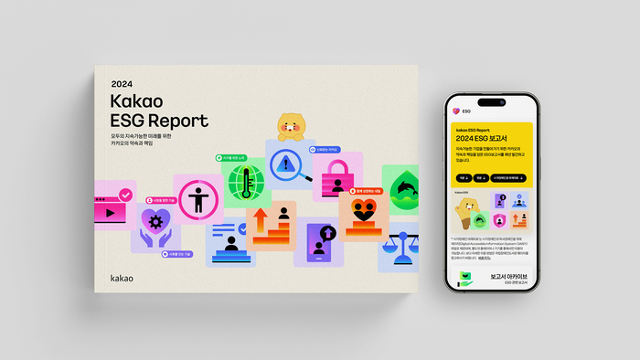 카카오 ESG 보고서. <카카오> 카카오는 지난 2024년 한 해 동안의 환경,사회,지배구조 관련 주요 활동과 성과를 담은 ESG 보고서 ‘2024 카카오의 약속과 책임’을 발간했다고 25일 밝혔다.