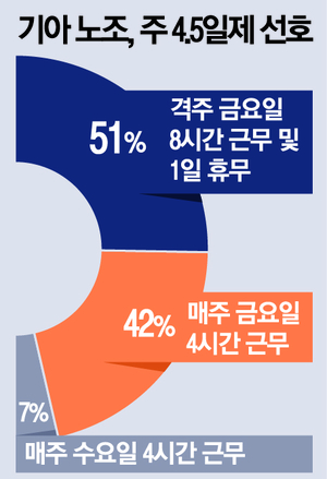 조합원을 대상으로 진행된 이번 설문조사에서 주 4.5일제 도입 방식에 대한 조사가 눈에 띈다. 기아 노조는 임금 방식과 근무 형태 등 두 가지에 대한 설문을 실시했다.
