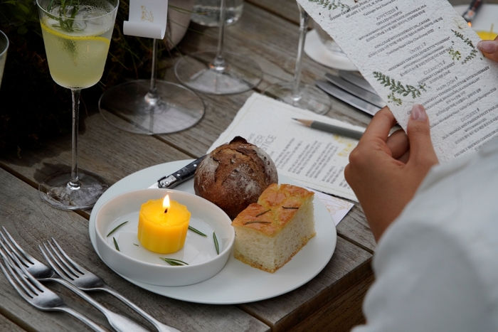 JW 가든 파티 / 사진=JW 메리어트 호텔 서울 이번 파티는 JW 가든에서 직접 채취한 로즈마리를 테마로 꾸몄다. 칵테일부터 7코스 디너와 디저트까지 가든 투 테이블(Garden to Table) 콘셉트를 적용했다. 식전 빵인 ‘브레이킹 브레드(Breaking Bread)’ 시간에는 로즈마리 버터 캔들과 허브 포카치아를 제공했다.