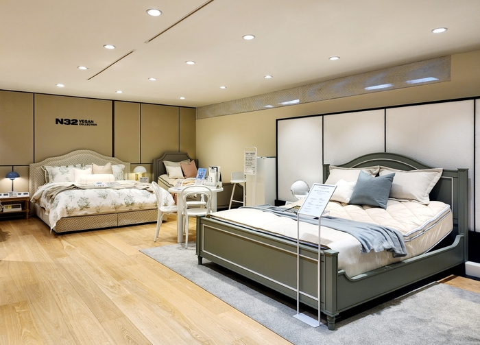 N32는 전 제품의 원단과 패딩에 아이슬란드 유기농 해조류를 원료로 한 ‘아이슬란드 씨셀’ 소재를 사용해 국내 침대업계 최초로 비건표준인증원으로부터 전 제품 비건 인증을 획득한 바 있다.