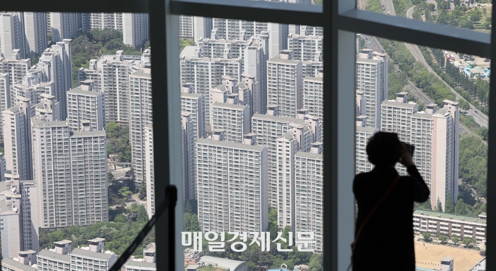 서울 송파구 롯데월드타워 서울스카이에서 내려다본 아파트 단지 [한주형 기자] A씨의 경우 양도세가 부과되지 않는다. 1주택 비과세 요건(거래가액 12억원 초과부터 과세)을 충족해서다. 이에 비해 2주택자인 B씨에게는 먼저 판 주택에 일반과세가 적용돼 양도세 7000만원을 부담하게 된다.