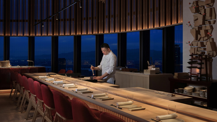 스시 라비스 오사카 야닉 알레노 / 사진=포시즌스 호텔 오사카 식음업장은 총 5곳이다. 37층 ‘장난춘’은 셰프 레이몬드 웡이 선보이는 광둥 요리 레스토랑으로 시내 전망과 오픈 키친이 특징이다. 같은 층 ‘스시 라비스 오사카 야닉 알레노’는 야닉 알레노와 야스다 이타루가 협업한 오마카세 레스토랑이다. ‘바 보타’는 간사이 지역 재료로 만든 칵테일과 일본 주류를 선보이며 원형 바를 중심으로 구성된다. ‘자르댕’은 조식부터 디너까지 운영되는 비스트로로 테라스와 정원 콘셉트의 인테리어가 돋보인다. ‘파린’은 갓 구운 빵과 페이스트리를 중심으로 커피,차를 테이크아웃으로 제공한다.