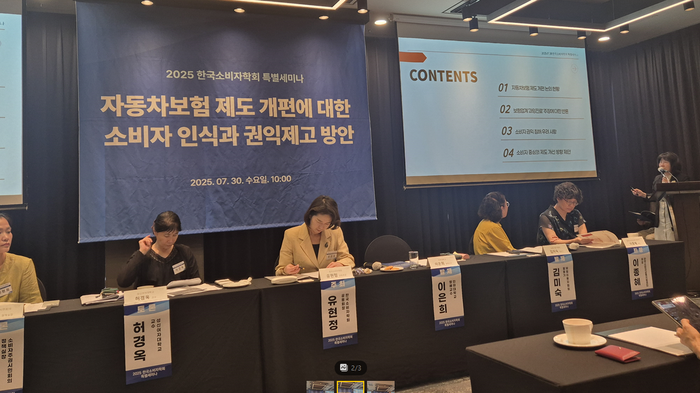 30일 ‘자동차보험 제도 개편에 대한 소비자인식과 권익제고 방안’을 주제로 국토교통부의 개정안 입법예고안에 대한 세미나가 열렸다. [사진 = 최종일 기자] 자동차 사고로 인해 8주를 넘어 장기 치료를 받으려면 보험사에 진료기록부 등 서류를 제출하는 내용을 담은 자동차보험 개정안을 두고 개정안의 취지는 존중하지만,소비자의 권익도 같이 고려해야 한다는 의견이 나왔다.