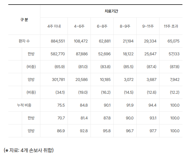 한편,최근 8주가 넘게 장기 치료를 받는 자동차 사고 경상환자의 대부분은 한방 환자로 집계됐다. 건강보험심사평가원에 따르면 한방병원 진료비는 지난 2019년 4308억원에서 지난해 9874억원으로 5년 새 2배 이상 늘었다.