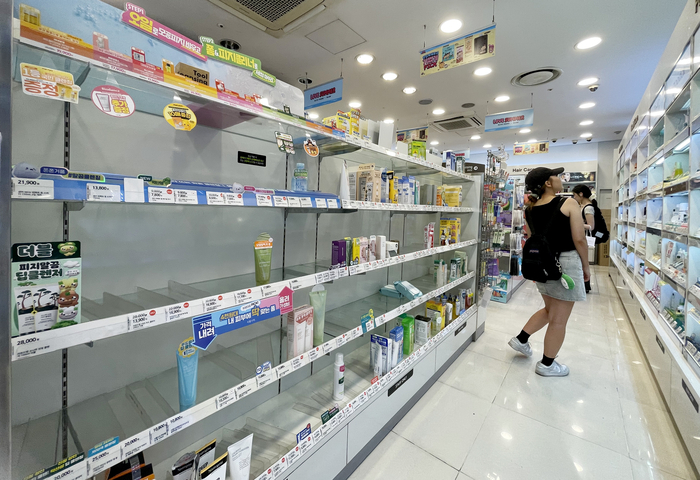 27일 ‘민생회복 소비쿠폰’ 사용 가능 매장인 서울 시내 한 올리브영 가맹점 진열대가 텅 비어 있다. [사진 = 연합뉴스] 서울 영등포구에 거주 중인 직장인 이모씨(31)는 퇴근 후 집 근처 올리브영 매장을 찾았다가,민생회복 소비쿠폰을 사용할 수 없다는 안내를 받았다. 연매출 30억원 이하의 가맹점에서만 사용할 수 있다는 조건을 미처 숙지하지 못한 것이다. 그는 사용 가능 지점을 검색하고,매장에 직접 전화로 확인한 뒤 해당 지점으로 발걸음을 옮겼다.