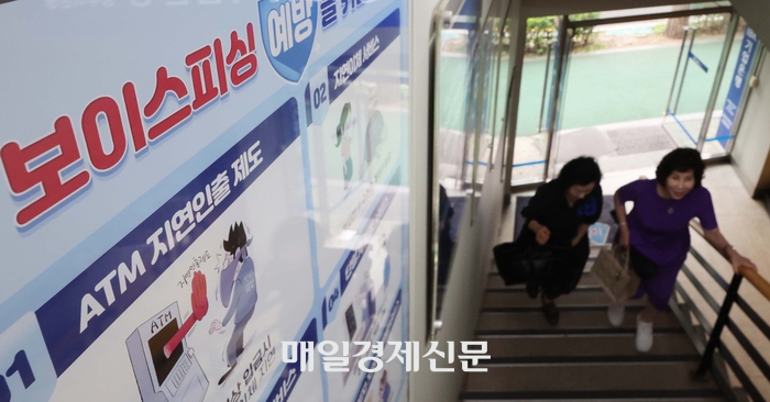 서울 시내 한 시중은행 ATM에 보이스피싱 예방 안내문이 붙어 있다. [매경DB] 금융당국이 보이스피싱 범죄를 막기 위해 종전까지 금융회사에만 부과됐던 정보 공유 의무를 통신사와 수사기관까지 확대하는 내용의 법 개정을 추진한다.