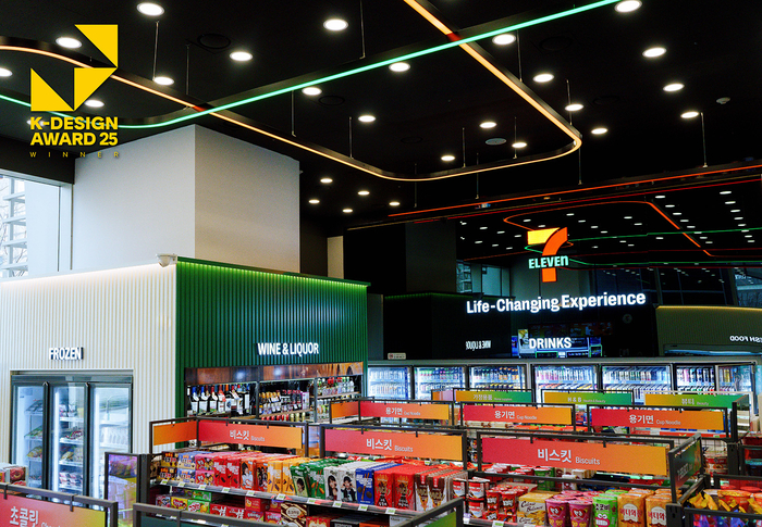 세븐일레븐 뉴웨이브 오리진점 내부 전경. 세븐일레븐 편의점 세븐일레븐(대표 김홍철)은 자사의 차세대 가맹 모델 ‘뉴웨이브(New Wave)’가 2025 K-디자인어워드에서 ‘위너(WINNER)’를 수상했다고 4일 밝혔다. 2012년에 첫 출범한 K-디자인어워드는 아시아 3대 국제 디자인 공모전으로 꼽힌다.