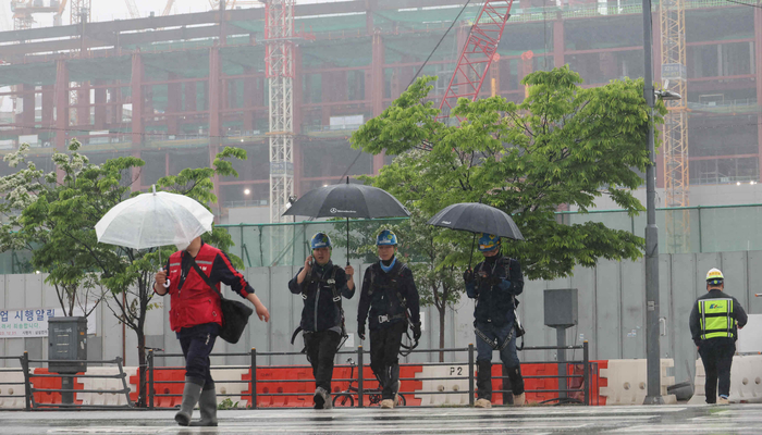 비가 내리는 날 평택의 한 공장 현장에서 건설노동자들이 작업장을 나서고 있다. [이승환 기자] 지난달부터 시행된 제로에너지건축물(ZEB) 인증 의무화도 건설사의 고민을 가중 시키는 원인이다. 자잿값 상승에 따른 공사비 상승 압력이 종전보다 더 심화됐다는 것이다. 여기에 정부가 추진 중인 ‘주 4.5일제’까지 건설현장에 적용되면 공기에 맞춰 사업을 진행하기는 현실적으로 불가능하다는 의견도 지배적이다.