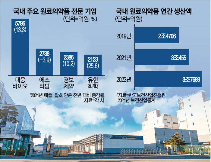 대웅그룹의 원료의약품 자회사 대웅바이오,종근당의 원료의약품 자회사 경보제약 등도 성장세를 이어가고 있다. 대웅바이오는 간기능개선제 원료인 ‘우루소데옥시콜(UDCA)’ 매출이 꾸준한 우상향 흐름을 보이면서 지난해 매출만 5000억원을 넘겼다. 중국,이탈리아 등에 원료의약품을 수출 중인 경보제약 역시 지난해 매출이 2386억원으로 1년 전보다 10% 넘게 증가했다.