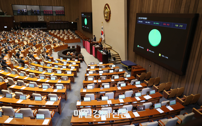 25일 서울 국회 본회의에서 상법 개정안이 여당 주도로 처리되고 있다.