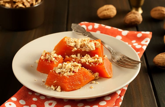 안탈리아의 인기 호박 디저트 카박 톨루수/사진=튀르키예 문화관광부 제공 안탈리아의 또 다른 매력은 ‘맛’이다. 양고기를 듬뿍 넣어 끓여낸 튀르키예식 국밥 ‘베이란(Beyran)’,상큼한 전통 음료 ‘아이란(Ayran)’,호박으로 만든 안탈리아의 보양식 디저트 ‘카박 톨루수(Kabak Tatlısı)’가 대표적이다.
