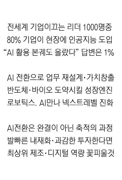 AI 전환은 단숨에 모든 것을 바꾸는 '만능열쇠'가 아니다. 조직문화,연구개발,인수·합병,사업구조 재편 등 수많은 영역에서 의사결정과 실행이 축적되는 과정이다.