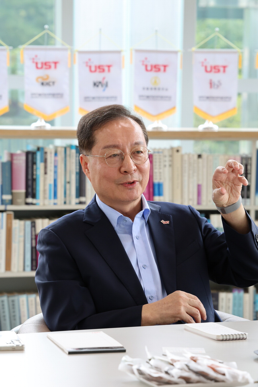 UST는 전임교원 1378명을 포함해 교원 수가 1558명에 달한다. 강 총장은 "각 분야에서 최고의 전문성을 갖춘 교원들"이라며 "영년직 제도나 석좌교수 제도 도입 등을 통해 교원의 질을 높이는 데도 집중하겠다"고 말했다.