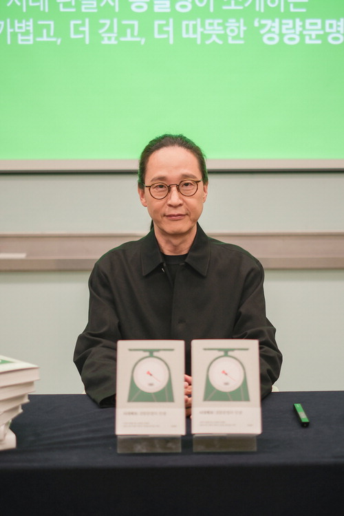 경량문명 출현의 한 예로 연예인 노홍철이 최근 글로벌 빅테크 메타와 광고 문제를 직접 협의한 사례를 거론했다. 그는 "예전엔 개인화·고령화 등이 상당히 오랜 기간 이뤄질 테니까 준비하란 뜻으로 '예보'를 했는데 이제는 빠르게 변화하는 것을 관찰해 '특보'로 전환했다"며 "이번 출간도 원래 일정보다 2주 앞당겼다. 전방위적으로 큰일이 오고 있구나 느꼈다"고 밝혔다.