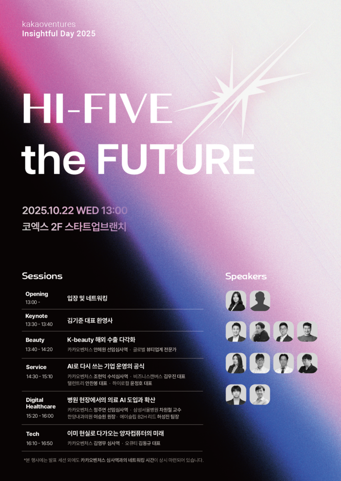 이번 행사에서는 카카오벤처스 주요 투자 분야인 서비스·딥테크·디지털헬스케어 영역에서 산업 동향 발표와 패널토론이 진행된다. 행사 현장에는 예비 창업자와 투자자가 교류할 수 있는 네트워킹 자리도 마련된다.