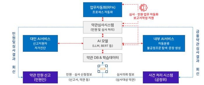 과학기술정보통신부와 정보통신산업진흥원이 주관한 ‘부처 협업 기반 AI 확산 사업’의 일환으로,실제 행정에 활용 가능한 AI 솔루션을 개발하고 실증하는 것이 목표다. 연간 4천 건 이상 접수되는 약관 관련 민원을 사람이 직접 검토해 오던 공정위는 심사 지연과 일관성 부족이라는 과제를 안고 있었고,이를 해결할 새로운 기술로 AI를 선택했다.