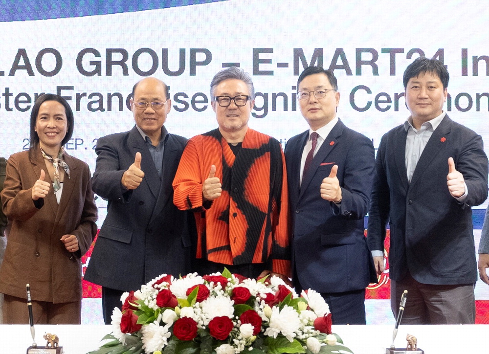 한국 편의점,라오스 첫 진출 이마트24가 한국 편의점 업계 최초로 라오스에 진출한다. 지난 25일 라오스 비엔티안 코라오그룹 본사에서 오세영 코라오그룹 회장,강인석 이마트24 상무(왼쪽 셋째부터)가 '이마트24·코라오그룹 마스터 프랜차이즈 계약'을 체결한 후 기념촬영을 하고 있다. 이마트24