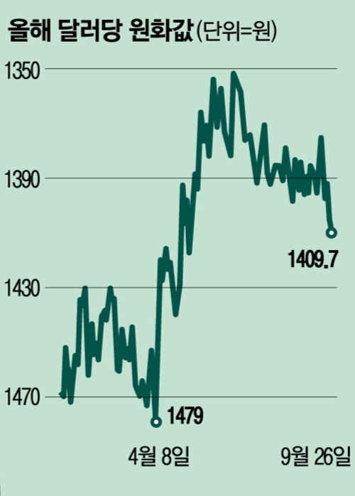 다만 이 같은 발표가 인위적인 원화 강세로 이어질 것이라는 우려도 존재한다. 시장에서는 달러당 원화값 1300원대를 기준으로 1200원대는 지나친 원화 강세로 보고 있다. 반면 지금처럼 1400원대 환율은 과도한 원화 약세라는 평가가 지배적이다. 원화 강세가 과도하면 국민연금,서학개미 등의 해외 투자 환손실이 커지고,수출기업의 가격 경쟁력이 약화된다.
