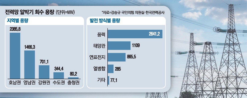 지역별로는 풍력과 태양광 발전사업 허가가 많은 호남과 영남권이 대다수였다. 호남권이 2385.8MW로 전체 47.9%를 차지했으며 영남권이 1466.3MW로 29.5%를 점유해 뒤를 이었다. 강원권은 701.1MW(14.1%),수도권은 344.4MW(7%) 등이었다.