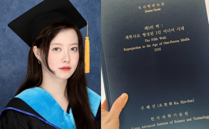 글과 함께 공개한 사진에는 구혜선이 학위복과 학사모를 착용하고 있다. 또 다른 사진에는 석사학위 논문 제본 표지가 담겨있다.