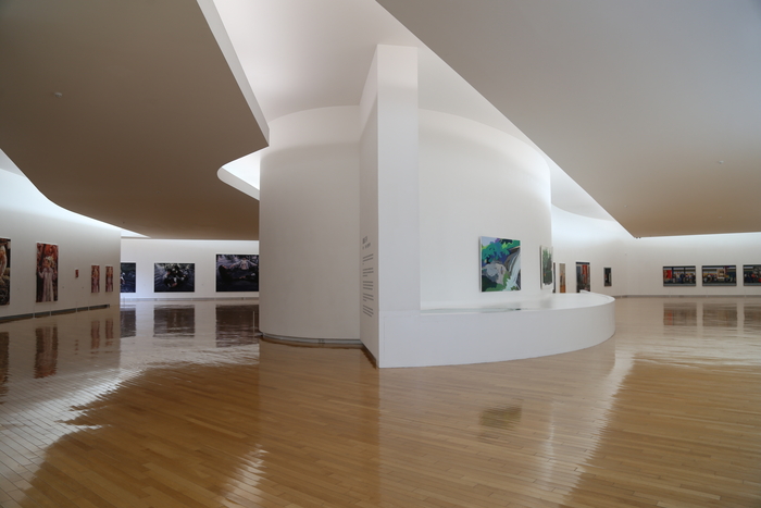 미술관 안으로 들어서면 1층 로비 프로젝트갤러리 벽면을 가득 채운 대형 회화작품이 시선을 사로잡는다. 이상남 작가의 ‘풍경의 알고리듬’이다. 하얀 배경 위에 삶을 상징하는 원과 죽음을 의미하는 직선이 교차하며 무수한 이야기와 현대사회의 풍경을 담아낸다. 대한민국 5만 어린이의 꿈과 330명의 자원봉사자의 마음이 모여 완성된 어린이 벽화 ‘5만의 창,미래의 벽’도 대표 작품 중 하나다.