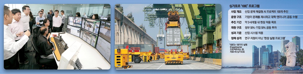 싱가포르 정부 주도로 만든 '100E(100 Experiments)'가 혁신적 변화를 만든 주인공이다. 총리실 산하 국가연구재단(NRF)이 이끈 이 사업은 금융·제조·물류·의료 등 다방면의 기업이 직면한 난제를 AI로 해결하는 프로젝트를 100개 이상 완수하겠다는 목표로 시작됐다.