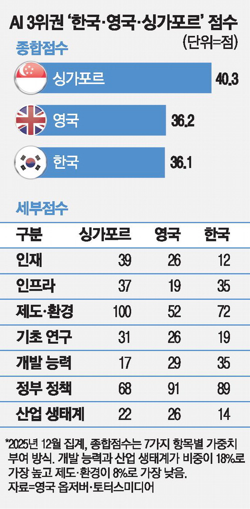 현재 싱가포르는 영국 토터스미디어의 글로벌 AI 지수에서 미국,중국과 어깨를 나란히 하며 세계 3위를 기록하고 있다. 도시 국가라는 한계를 '속도'와 '실행력'으로 돌파한 싱가포르는 동남아시아를 넘어 명실상부한 '글로벌 AI 3강'으로서의 입지를 공고히 하고 있다.